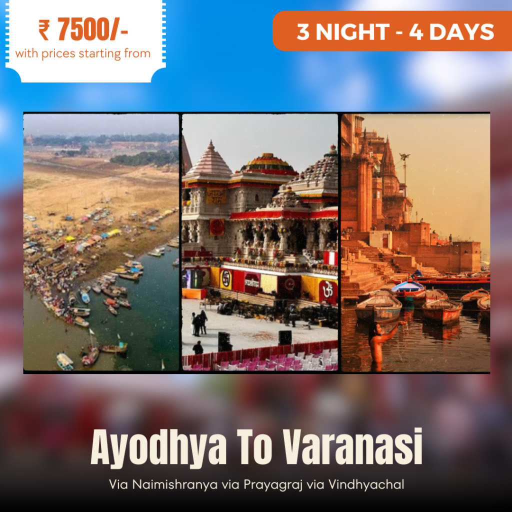 Discover the spiritual essence of India with our Ayodhya to Varanasi Tour Package. This journey takes you from the sacred city of Ayodhya to Varanasi, via the holy sites of Naimisharanya, Prayagraj, and Vindhyachal. Enjoy the rich religious heritage, visiting revered temples, sacred ghats, and historical landmarks.